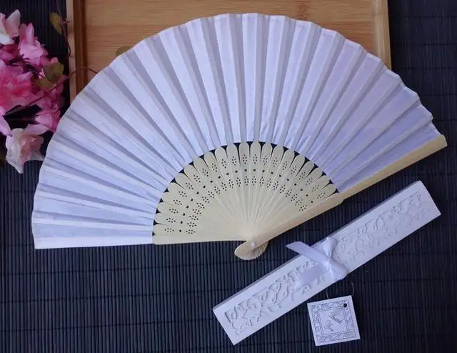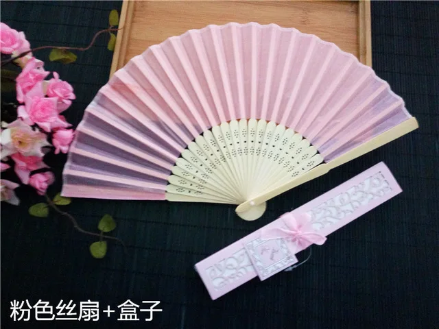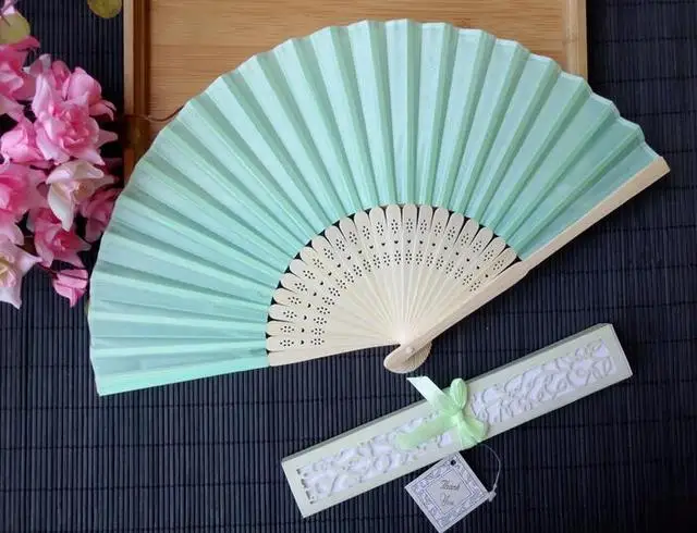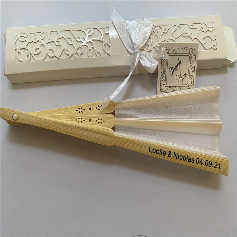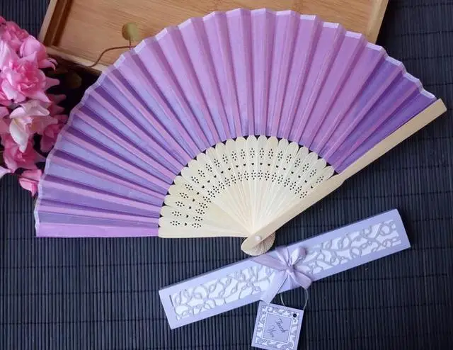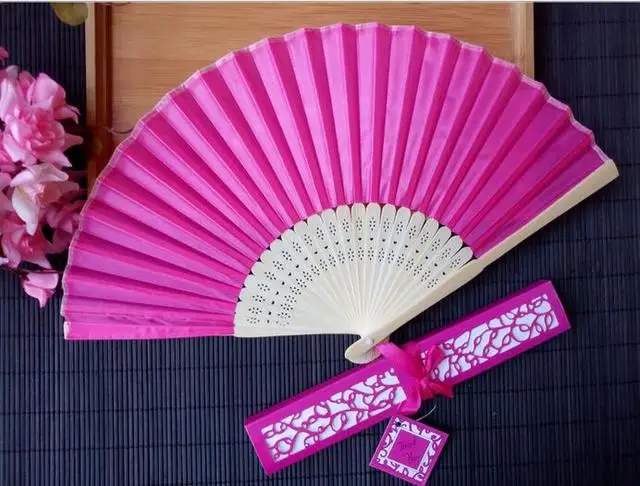 Luxurious Silk Fold Hand Fan, Elegant Laser-Cut Gift Box, Wedding Party Favors Gifts, 11 Colors,
