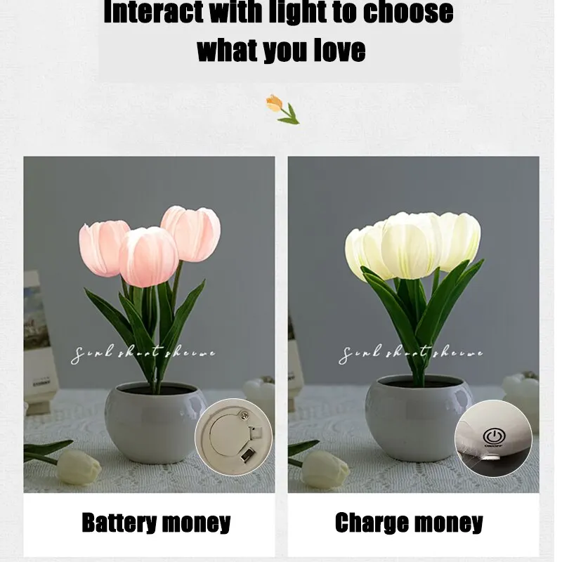 Tulip Table Lamp LED Bedside Lamp Simulation Flower Bouquet Bedroom Bedside Romantic Atmosphere Birthday Gift Home Decoration